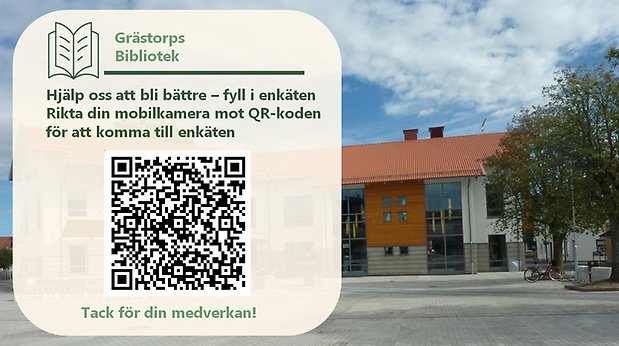 Rikta din mobilkamera mot QR-koden och klicka på länken för att komma till enkäten eller klicka på Till bibliotekets besöksenkät.